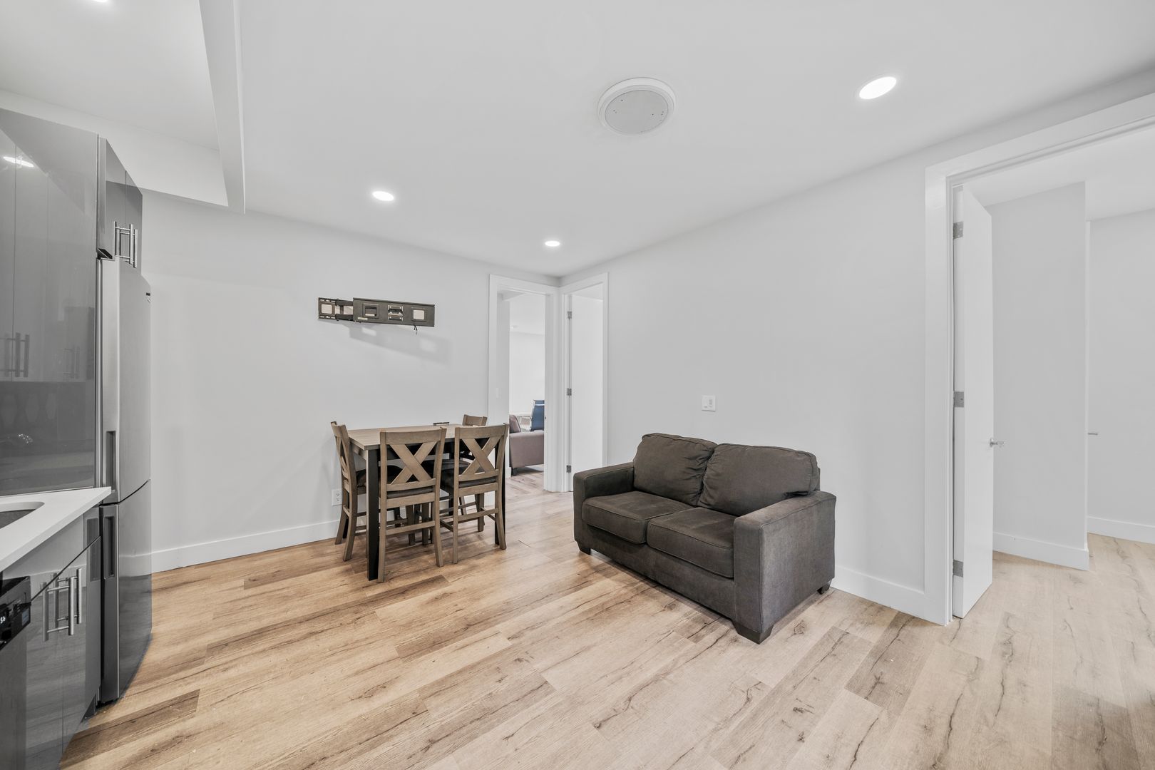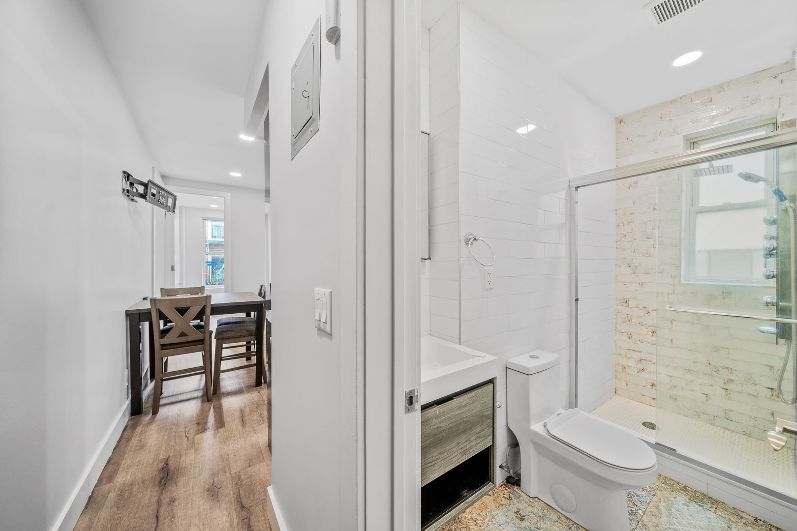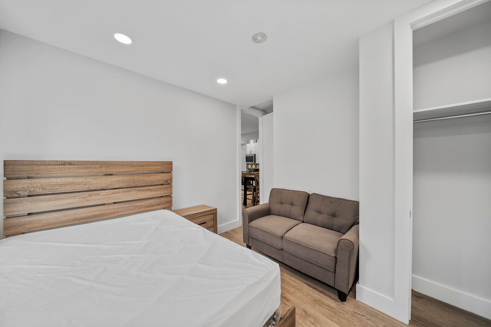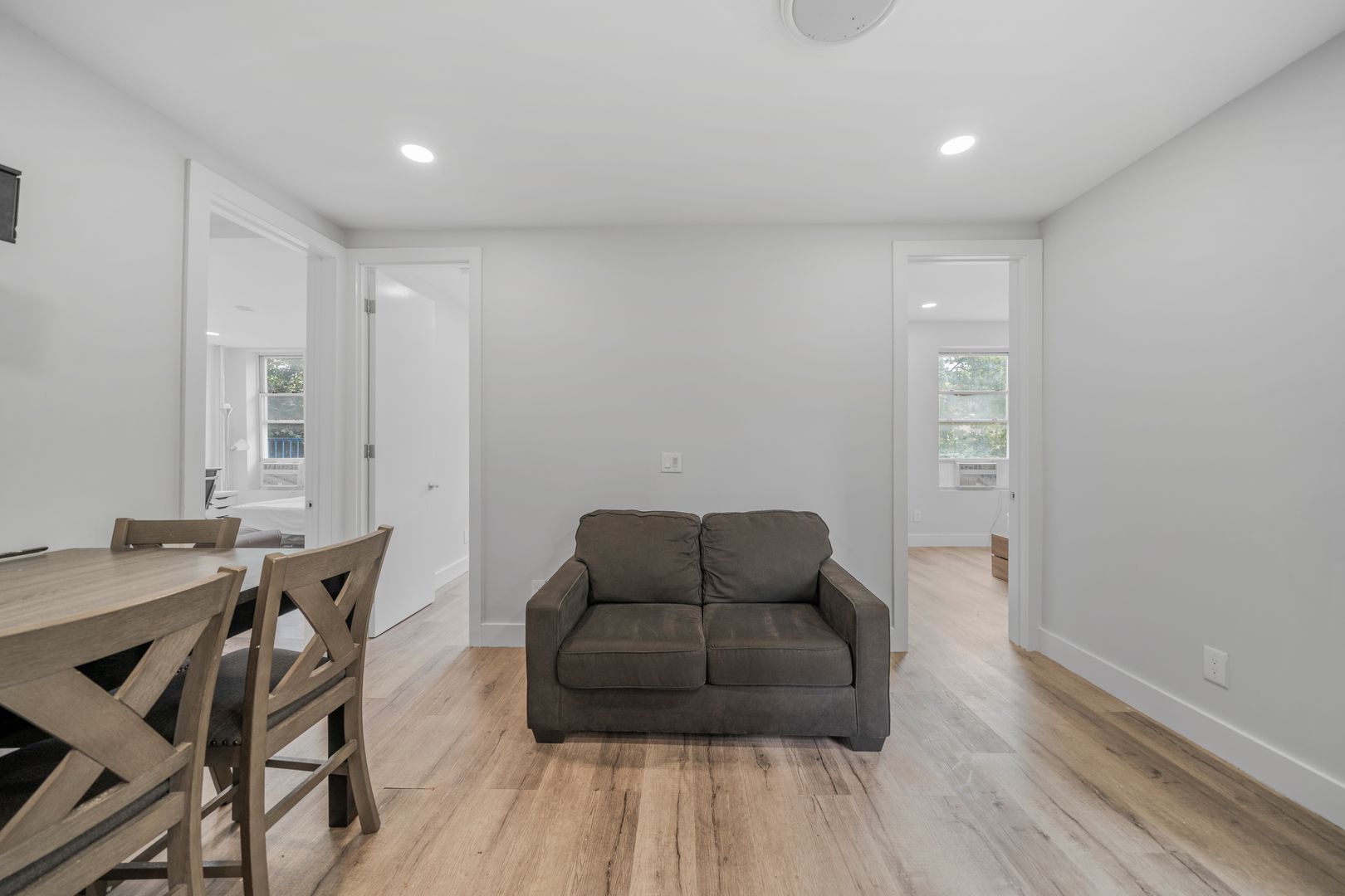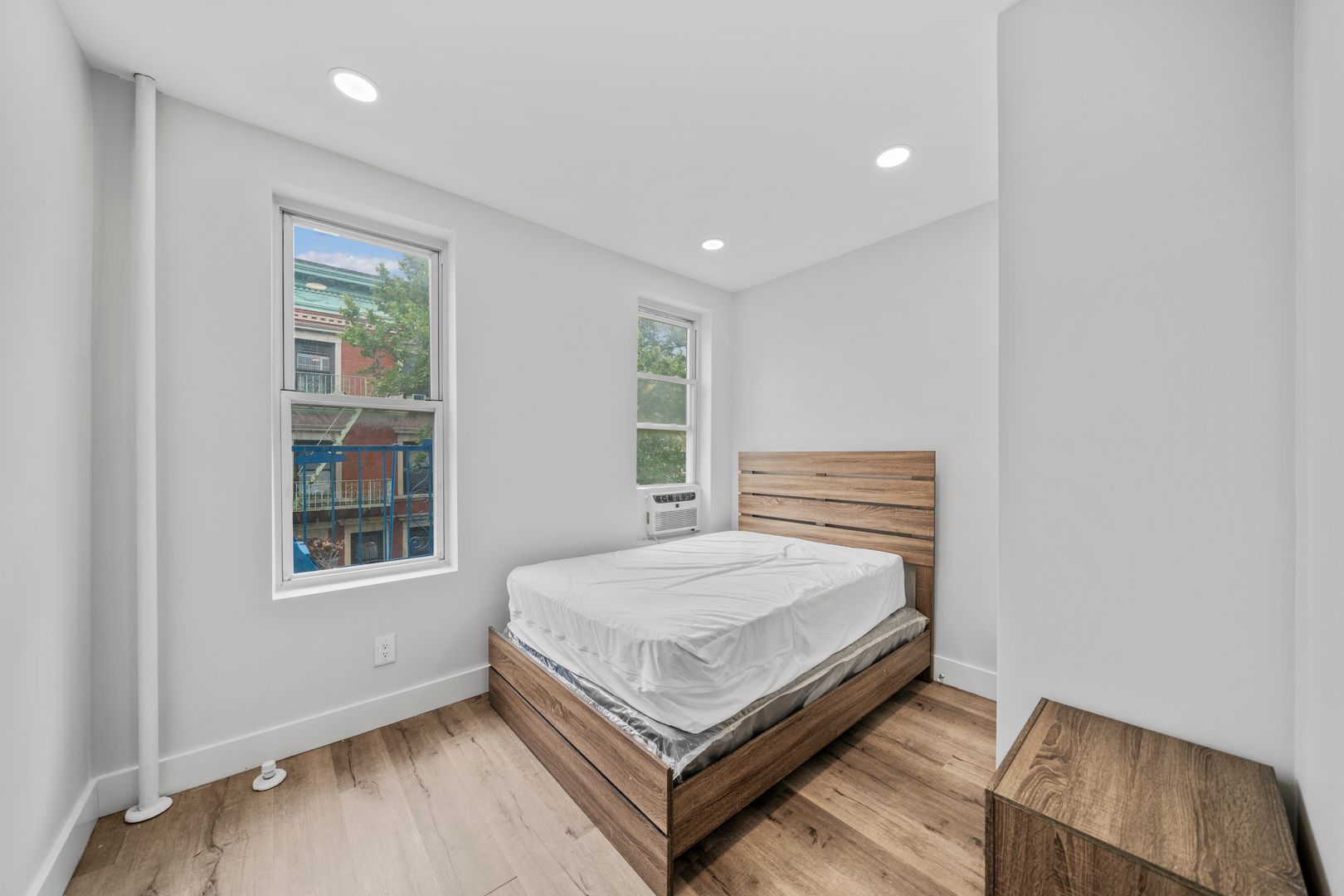This true 4 bedroom 1 bath has been fully gut renovated and boasts queen sized bedrooms, large living room area, beautiful modern finishes including brand new hardwood floors, recessed lighting, sleek kitchen design with granite countertops and LG and GE stainless steel appliances, brand new modernized bathroom with rain shower and more. The units come fully furnished with full sized beds, couches, tables, free smart TV, all utilities included, and more!